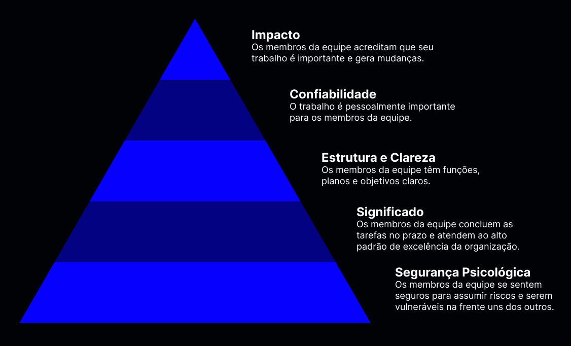 Estrutura e clareza: envolve a compreensão clara dos objetivos do projeto e dos papéis individuais. Está associada a uma maior produtividade e foco da equipe.